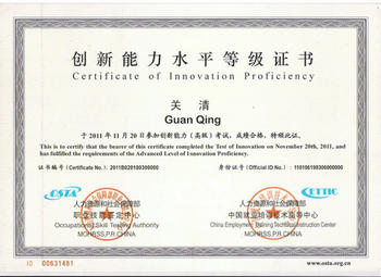 認證考試形式:在校學生參加OSTA《創新能力水平等級證書》取證考試,無需考前按等級報名,只要按規定繳費后,即可參加全國統一命題、統一考務管理的考試,并根據合格考生的成績(標準為:初級50~69分、中級70~89分、高級90分以上),分別由人社部鑒定中心和人社部培訓中心聯合頒發相應級別(初、中、高級)的OSTA《創新能力水平等級證書》。