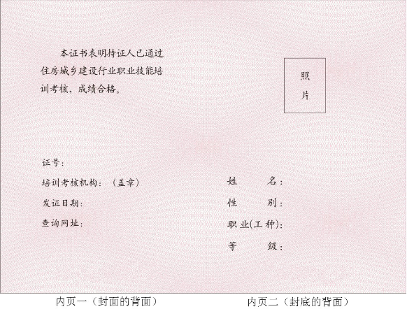 住房城鄉建設行業技能人員職業培訓合格證式樣說明