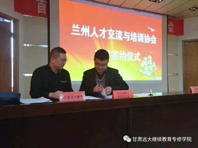 甘肅遠(yuǎn)大繼續(xù)教育專修學(xué)院與蘭州成志職業(yè)培訓(xùn)學(xué)校,蘭州中豐建科工程技術(shù)中心,甘肅學(xué)志教育科技有限公司等六家機(jī)構(gòu)成功簽約。