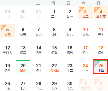 注:4月24日(星期六)全體休息,4月25日(星期日)正常上班。